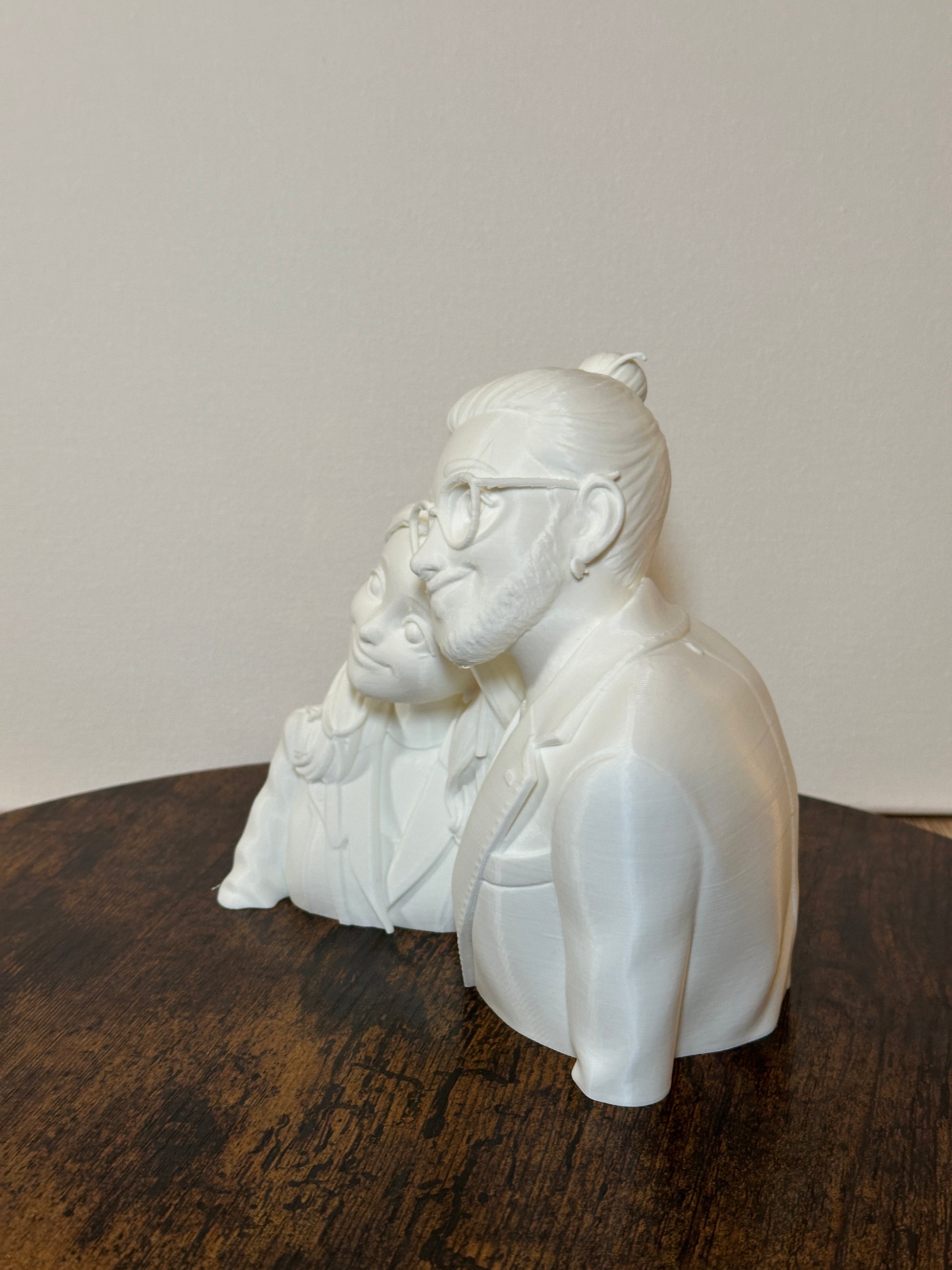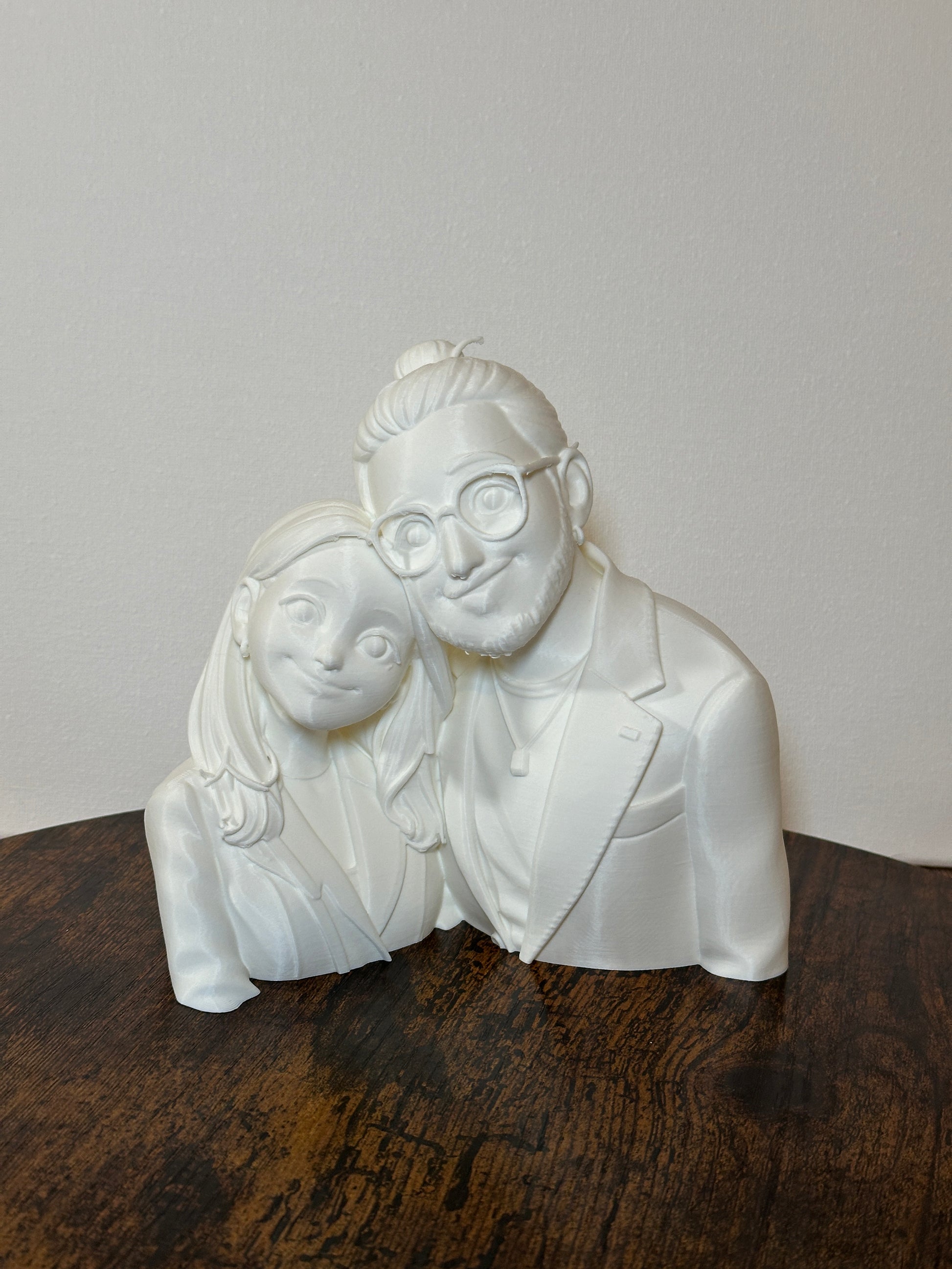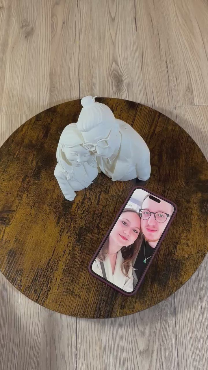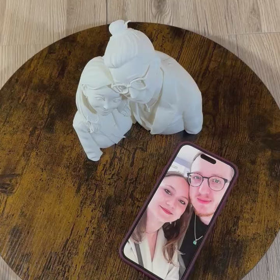 Questa statua personalizzata in stile cartoon viene realizzata partendo da una tua fotografia, trasformata in una scultura 3D unica, pensata per raccontare una persona o una coppia in modo delicato e stilizzato.