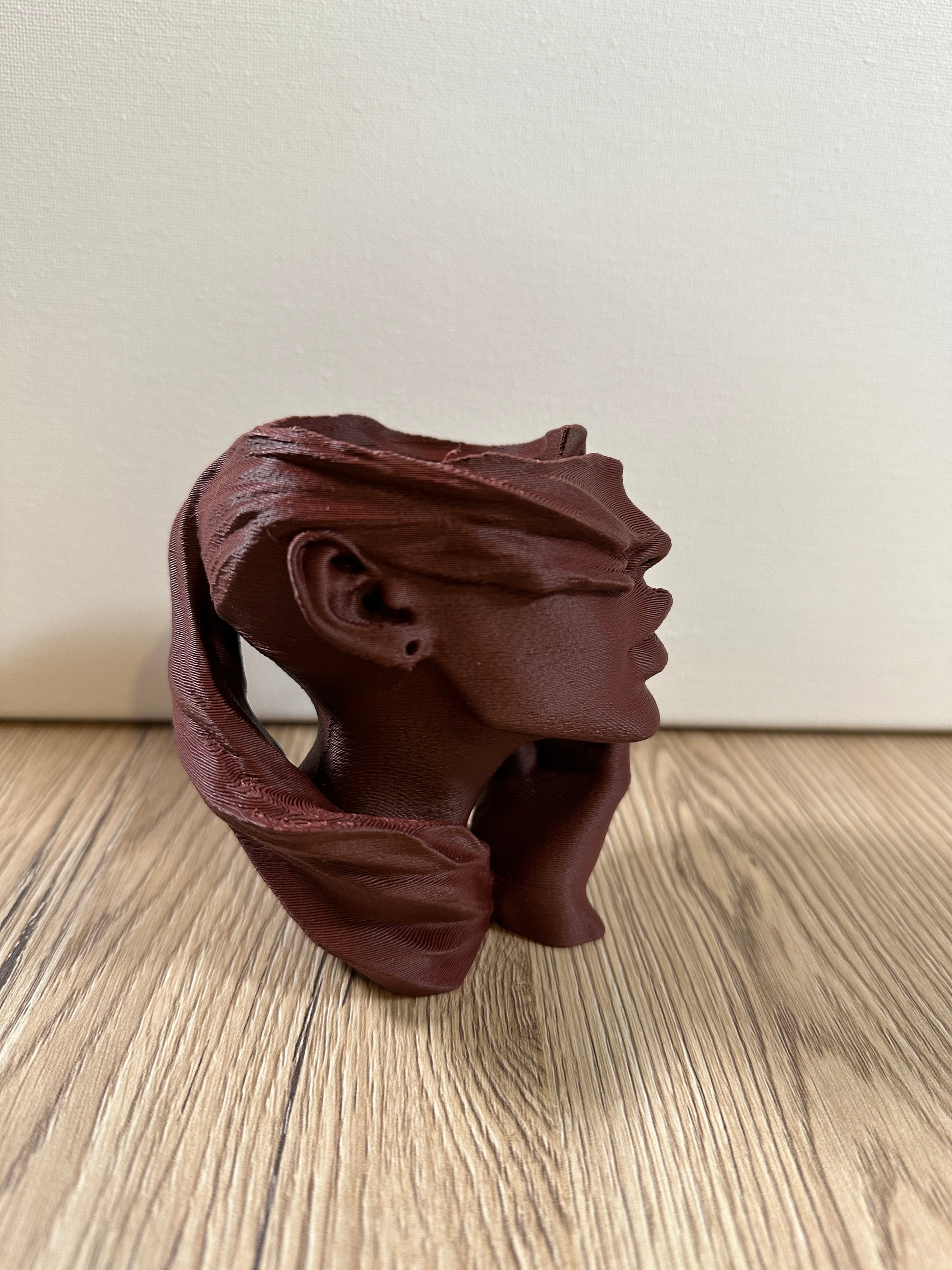 Elegante vaso artistico raffigurante la Dea Bendata, simbolo di fortuna e destino, realizzato con stampa 3D.